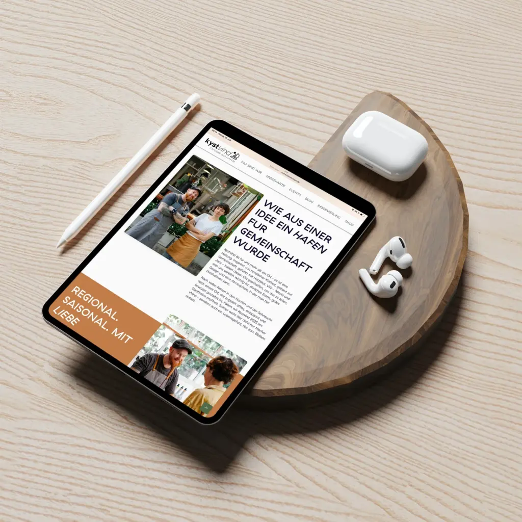 Ein frisches, nordisch geprägtes Branding für ein Gastronomiekonzept mit Charakter. Für das Kystvind Hafenbistro entstand ein stimmiges Erscheinungsbild – von der Logoentwicklung über Farbwelt bis zur einladenden Website. Leicht, maritim und auf den Punkt.