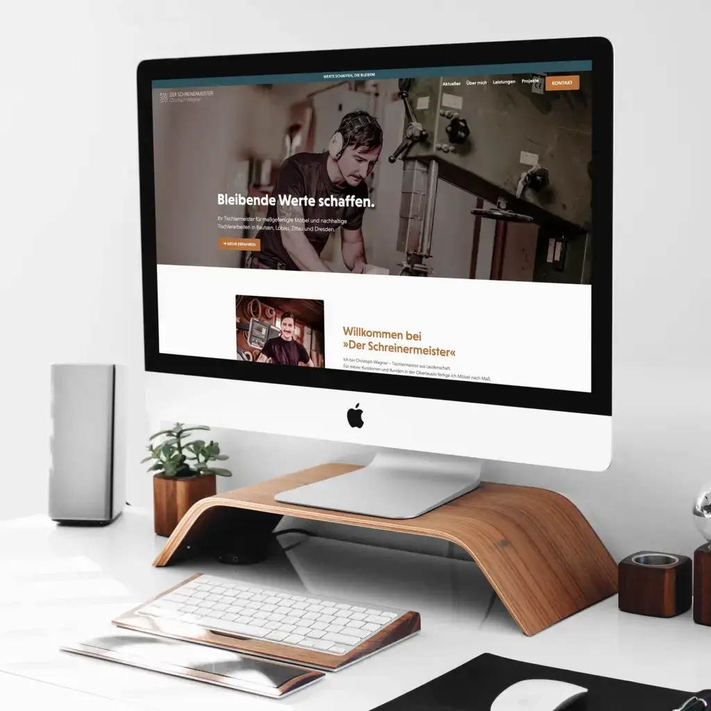 Ein authentischer Online-Auftritt für ein traditionelles Handwerksunternehmen. Das neue Design für »Der Schreinermeister« kombiniert klare Strukturen mit handwerklicher Ästhetik – inklusive Logo, Website und Printmaterialien, die Vertrauen schaffen.